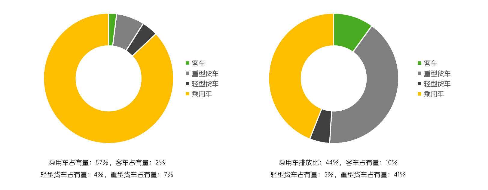 為什么我們要關(guān)注重貨碳排放公路運(yùn)輸中重型貨車的排放量占據(jù)比重較大,占公路運(yùn)輸碳排放總量的 41%。近年來我國乘用車市場(chǎng)規(guī)模持續(xù)擴(kuò)張,交通運(yùn)輸能耗及排放問題得到全社會(huì)的高度重視,管理部門采取了多項(xiàng)措施推動(dòng)交通運(yùn)輸?shù)牡吞嫁D(zhuǎn)型,各種新能源乘用車爆發(fā)式發(fā)展,年保有量、增長比例大幅上升。據(jù)公安部統(tǒng)計(jì),2021年全國機(jī)動(dòng)車保有量達(dá)3.95億輛,其中汽車3.02億輛;新能源車輛全國新能源汽車保有量達(dá)784萬輛,占汽車總量的2.60%,其中,純電動(dòng)汽車保有量640萬輛,占新能源汽車總量的81.63%。根據(jù)《中國移動(dòng)源環(huán)境管理年報(bào)》對(duì)車輛的保有量和碳排量數(shù)據(jù),我們做了如下的對(duì)比